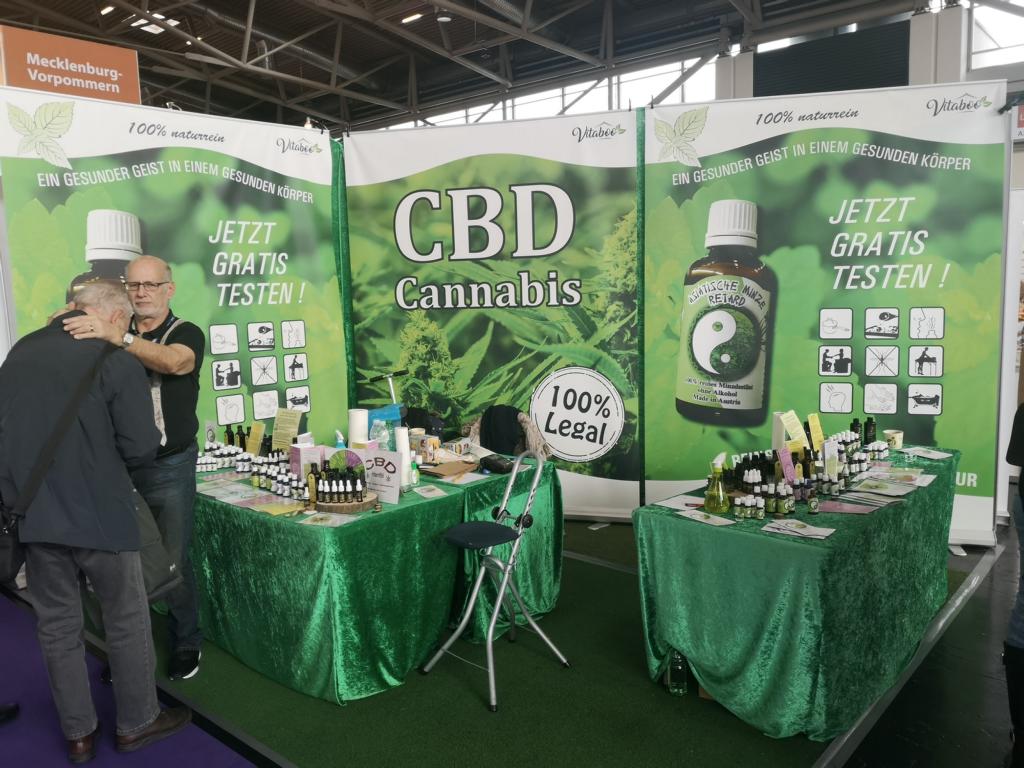 Auf der Messe F.re.e in München waren an einem Stand zahlreiche Heilmittel mit Cannabis ausgestellt. Es entwickelt sich in der Tat ein Markt.